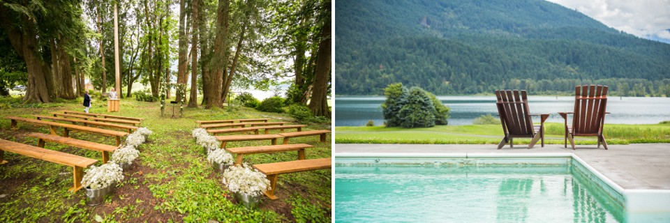 Old school charm flourishes in every corner of Rowena’s Inn on the River. The estate manages to bring rustic and glam together in harmonious union, lending effortless class to any wedding. The lush ground beautifully accommodate everything from secluded elopements to moderately sized parties, with their smallest package designed for a bride, groom, and two witnesses; their largest, 150 guests. A couple looking to elope will exchange vows in the cozy drawing room with views of the Harrison River and mountains beyond. A three course meal for four (bride, groom, two witnesses) is prepared by the inn’s resident chef to follow the vows, after which the glowing newlyweds may retire to onsite accommodations either in the main house or in one of the cottages sprinkled across the estate. A warm, country style breakfast will be waiting for the lovebirds the next morning, and is included in the price of an overnight stay.